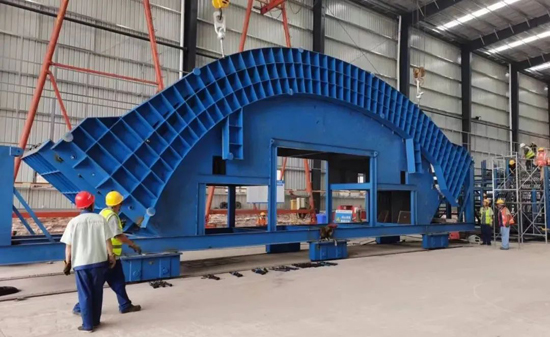 項目首次采用裝配式隧道結構新技術,高精度預制構件成為至關重要的一環。通聯科技模具團隊從模具尺寸精度、模具強度、模具出筋方式處理、構件脫模、安全實用性以及模具使用過程中的銹蝕問題等方面綜合考慮,并通過選材優化和焊接優化,設計生產出高精度模具,助力客戶在實踐裝配式建筑的過程中完成了“制造+建筑”的跨界融合。